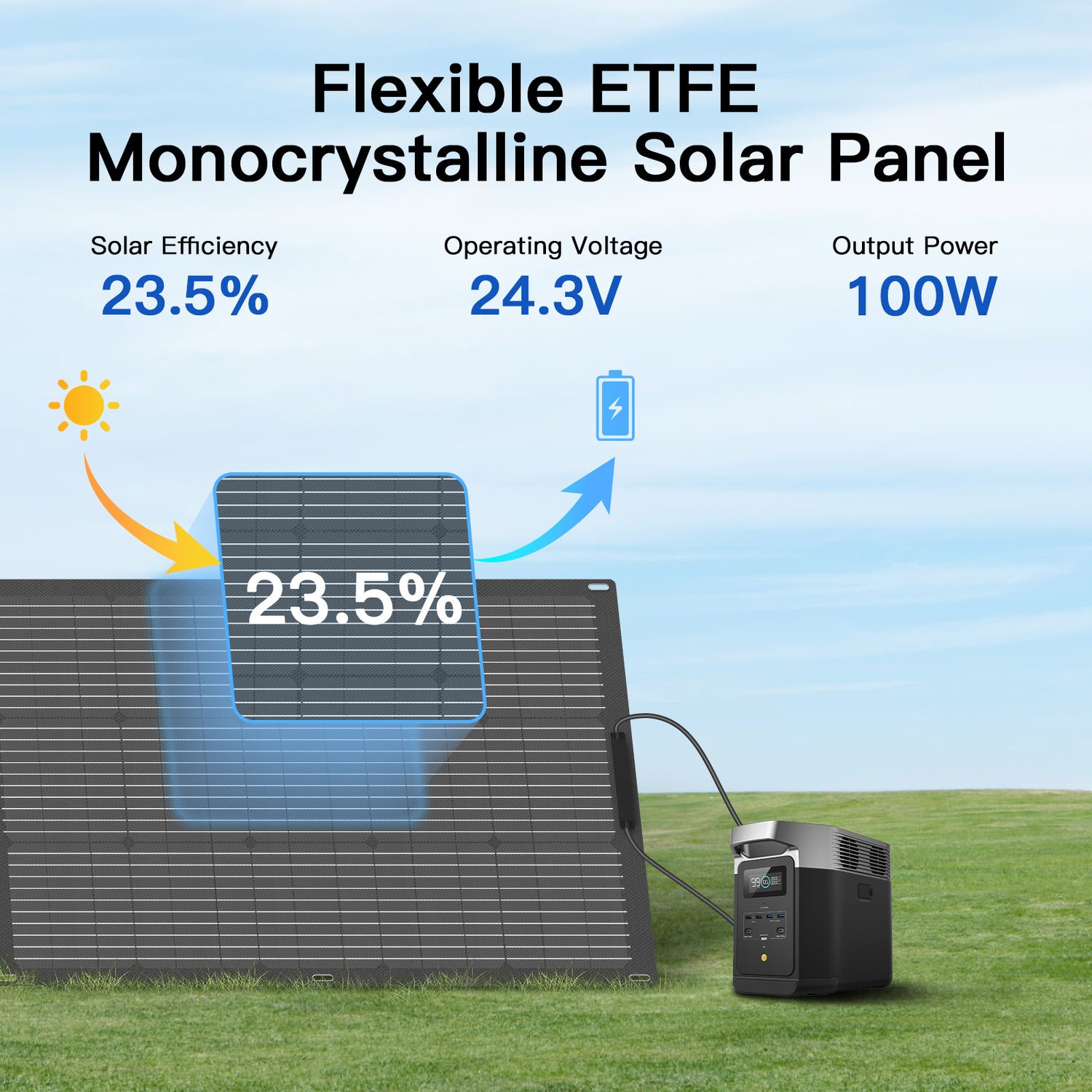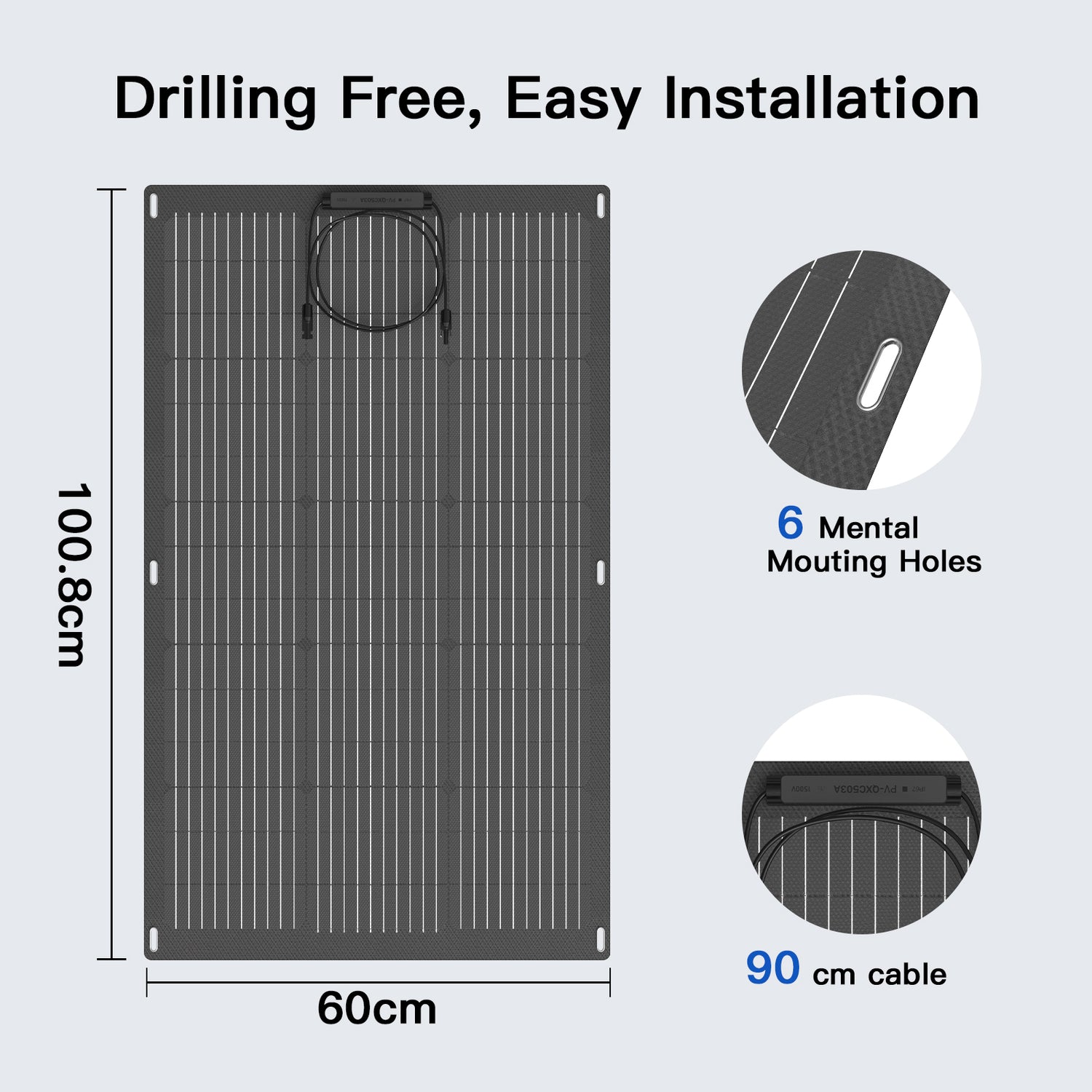 MHPOWOS 100W Flexible solar panels are made of Monocrystalline solar cells, whose conversion rate can reach 23%-25%. Honeycomb ETFE is used on the surface, and the unevenness forms refraction to collect sunlight from different angles. Coupled with the Solar Connector port with minimal loss, you can get more power simultaneously. Great choice for RVs, roofs, campers, trailers, boats, cabins, sheds, tents, and yachts.