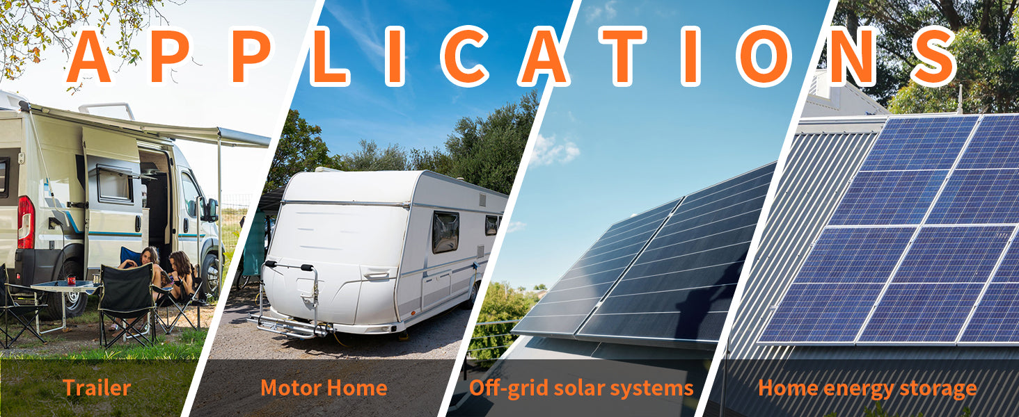 • Suitable for solar homes, RVs, campers, Caravan, trolling motors, Overland, boats, off-grid applications, home energy storage, UPS backup power systems, etc.