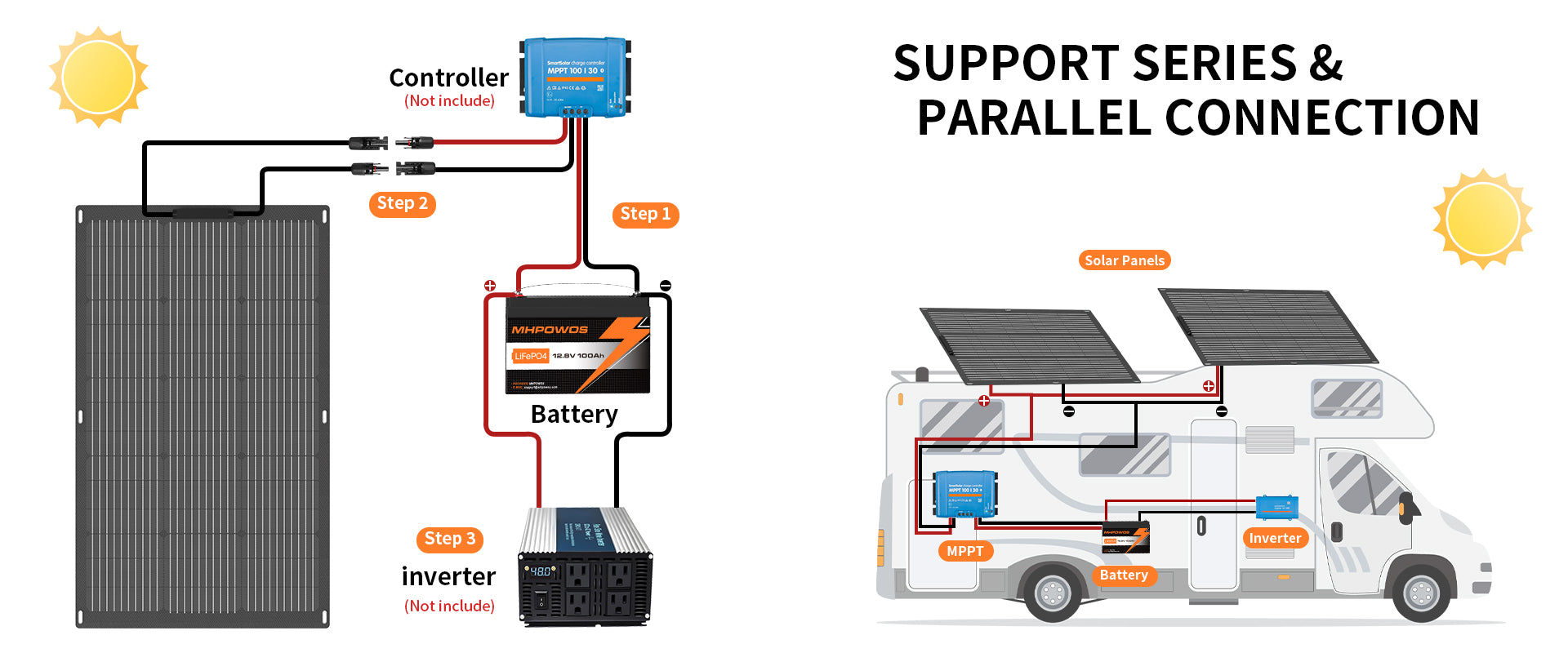 MHPOWOS 25.6V 100Ah batteries adopt Class A batteries and provide high-efficiency energy to the devices. With higher energy density, greater power, longer cycle life, lighter weight and higher safety levels compared to lead acid batteries. It meets the RV appliances, off-grid home storage and other high energy intensive needs you need!
