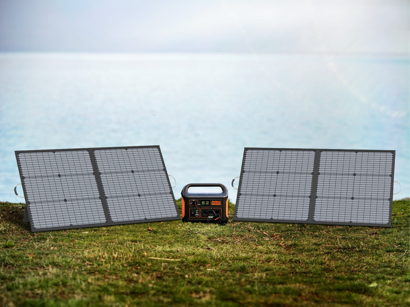 The solar panels are made with high-efficiency monocrystalline cells and feature a honeycomb light trapping design. Equipped with adjustable stands, these panels are designed to maximize solar energy capture in a variety of conditions.