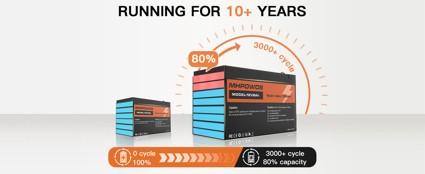 Q1: What is the lifespan of MHPOWOS 12V 8A LiFePO4 lithium battery?