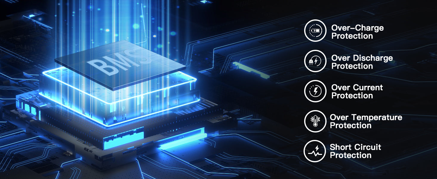 • 100% BMS protection with overcharge, over-discharge, over-current, overheating, and short circuit.