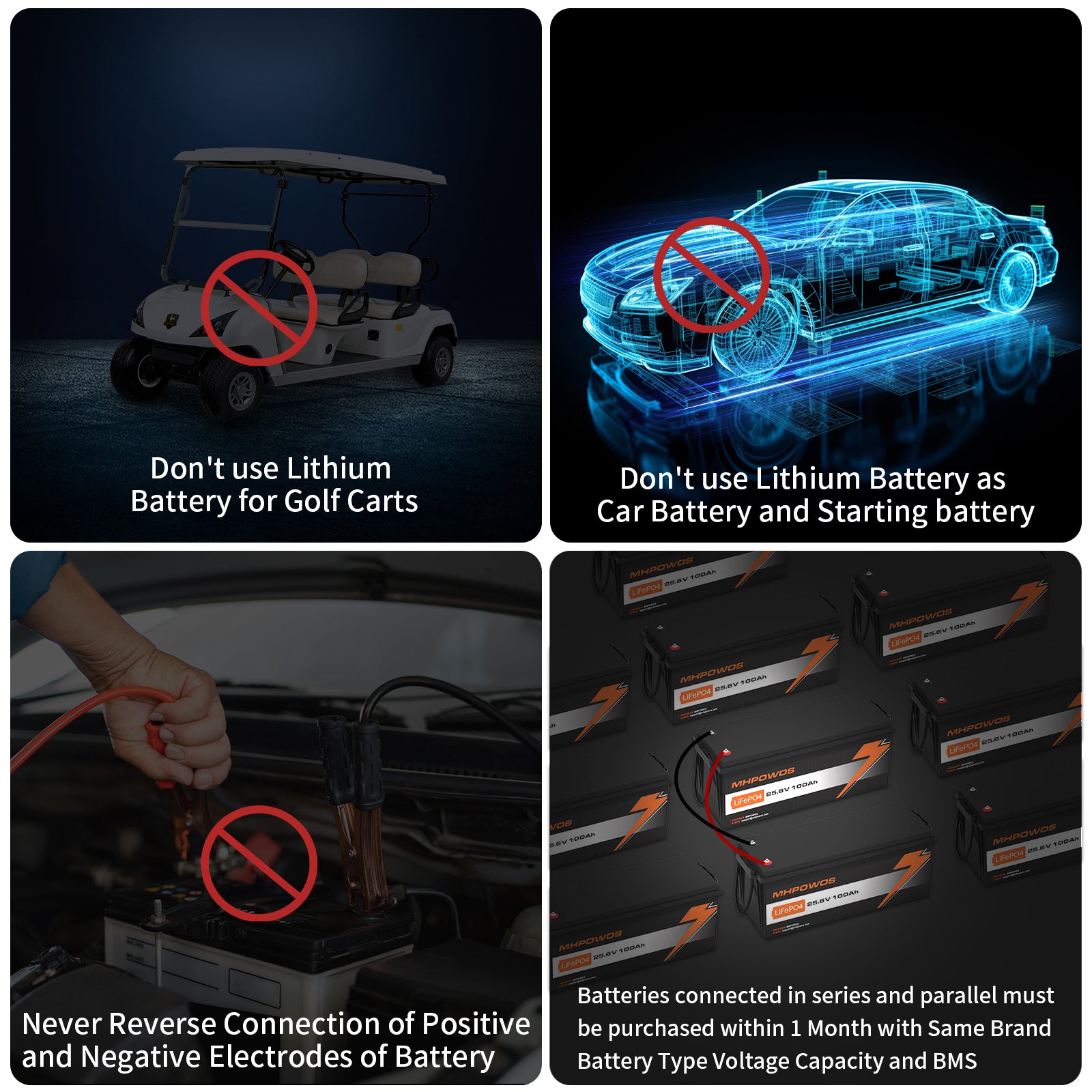 Q4: Can I use MHPOWOS LiFePO4 lithium batteries as starting batteries?