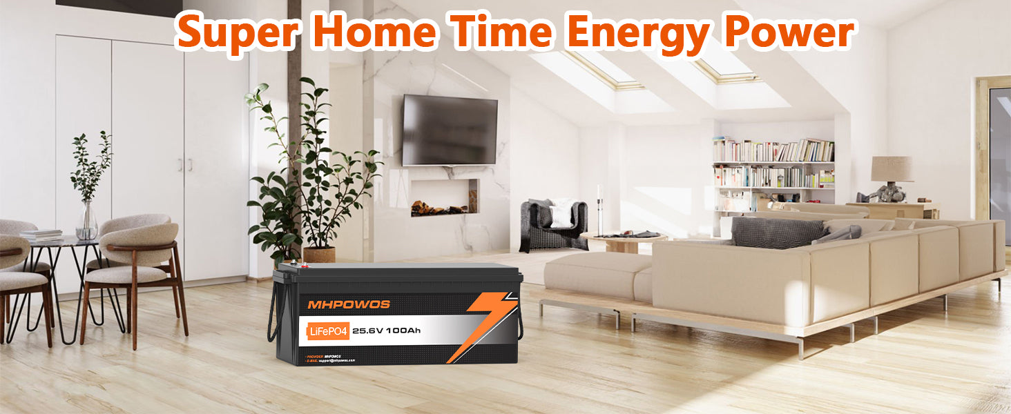MHPOWOS 25.6V lithium ion battery is safe and non-toxic. It can provide 2560Wh of power, perfectly adapting to various household energy needs.Ideal for solar homes, RVs, Backup power supply, home energy storage and off - grid use, meeting high - power demands across applications.