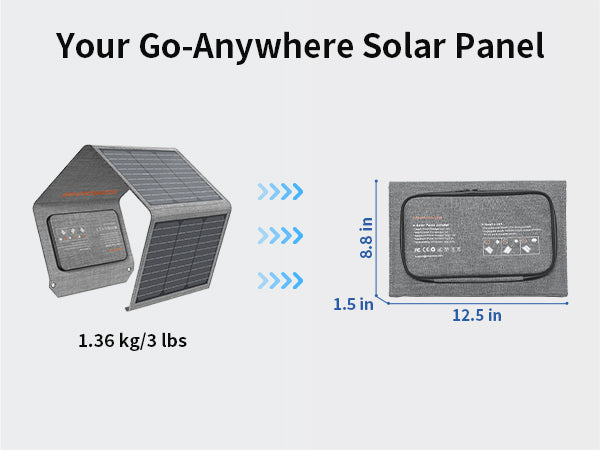 • Easy-to-Carry, Foldable Design: With portability in mind, the solar panel is lightweight, compact, and foldable for easy storage and transportation. Ideal for travel and outdoor enthusiasts.