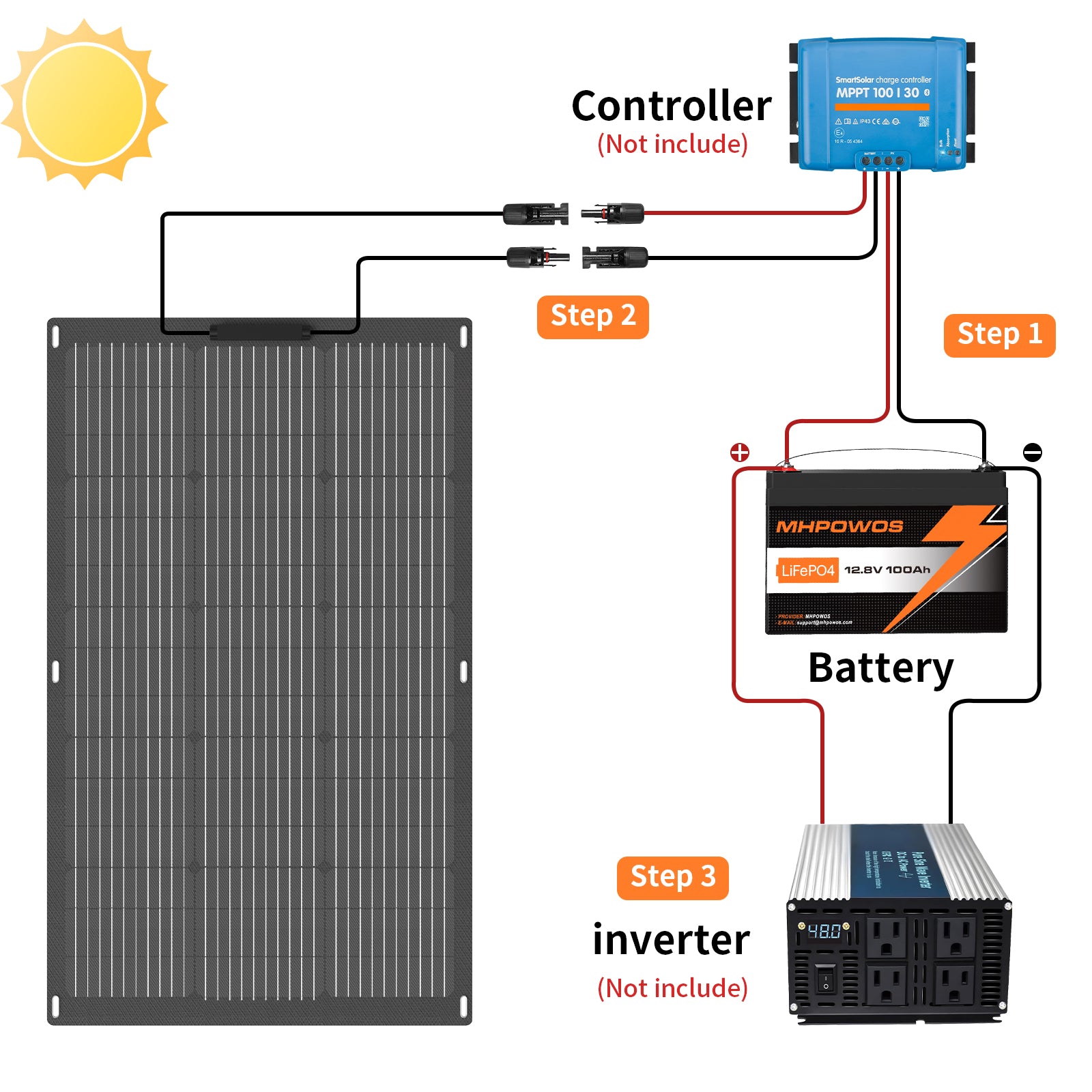 Compatible With Most Solar Generators with Solar Connectors;Great choice for RVs, roofs, campers, trailers, boats, cabins, sheds, tents, yachts.